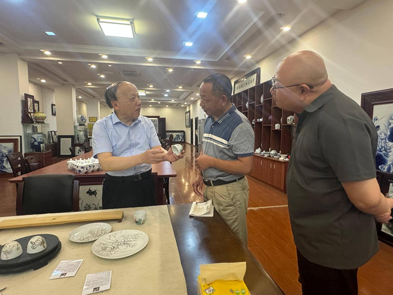 7月8日,景德镇市侨联党组书记、主席候选人吴群明带队赴侨商联合会和国际文化交流促进会进行走访调研,市侨联党组成员、专职副主席候选人翁凯参加调研。 调研中,调研组深入了解侨商联合会和国际文化交流促进会近年来工作开展情况及未来发展规划,结合市侨联换届对两个协会的换届工作进行指导并提出工作要求。 吴群明对侨商联合会和国际文化交流促进会在传播瓷茶文化方面的积极作用表示肯定,希望两个协会结合今年的换届工作进一步优化组织架构,强化自身队伍建设。在今后的工作中,要充分发挥自身优势,以“瓷茶文化”为纽带,以社团为平台更好的向世界传递千年瓷都的名片,为把“千年瓷都”这块金字招牌擦的更亮贡献新的力量,谱写新的篇章。 调研结束后,调研组一行还走访了市侨联兼职副主席过小明经营企业。